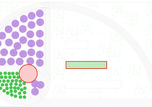 Each of the five terraces (edged in French limestone and Cor-Ten steel) is positioned in accord with the Fibonacci sequence with all terraces sloping to one side. A tumbling rill links the terraces.